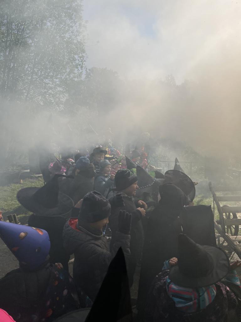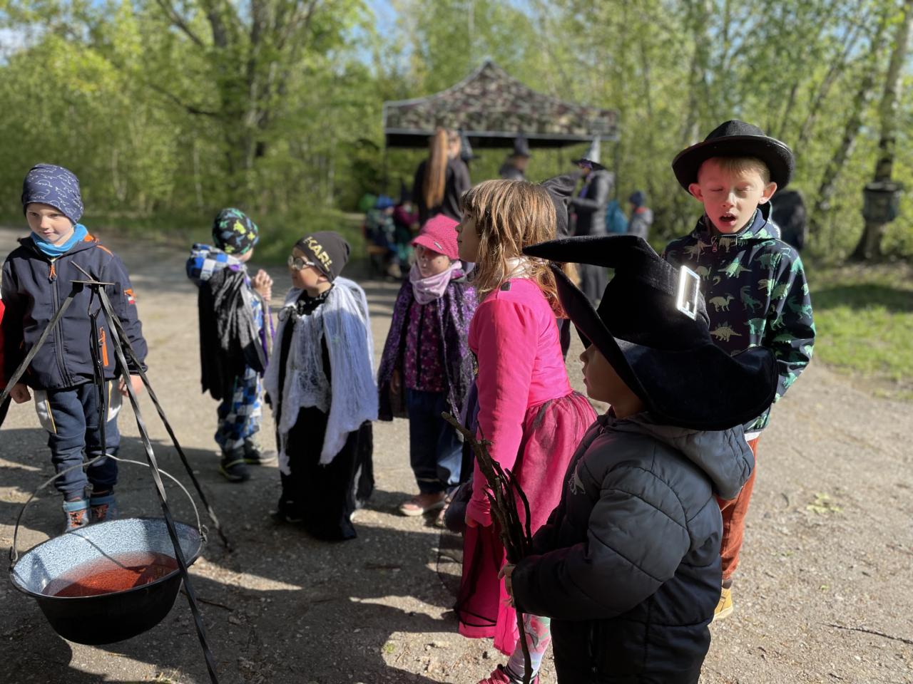 Tento rok se čarodějnické dopoledne díky, hodným rodičům mohlo opět uskutečnit ve velkém stylu. Děti si užily čarodějnické stezky, letu na koštěti, míchání lektvarů i opékání buřtů.